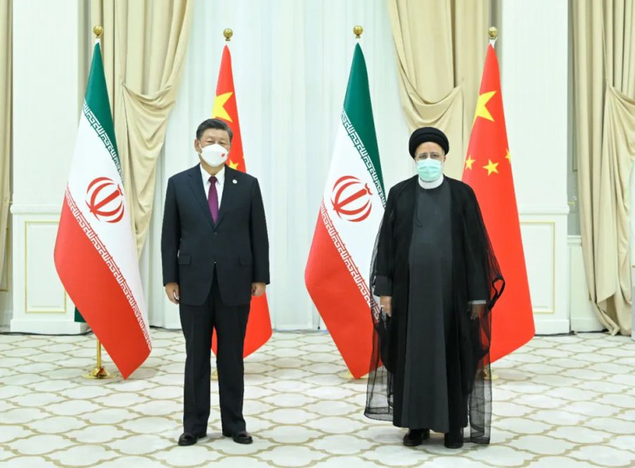 当地时间16日上午,国家主席习近平在撒马尔罕国宾馆会见伊朗总统莱希。
