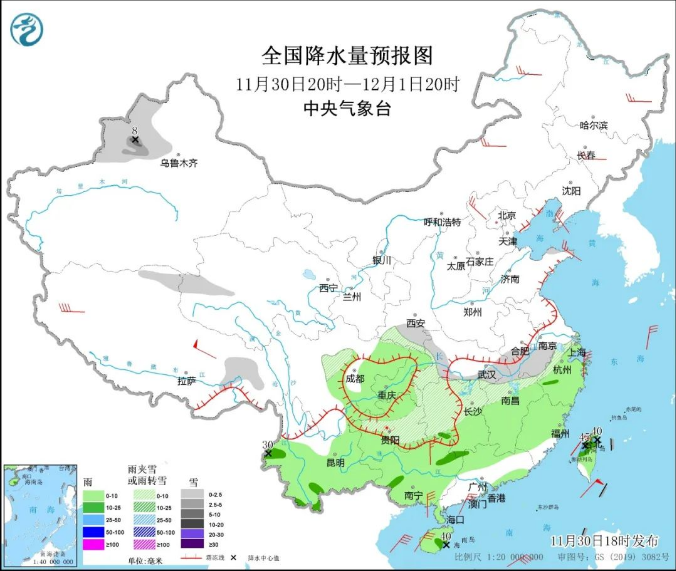 今日天气:湖北西部和南部、安徽南部、江苏南部、江西北部、湖南北部和西部、贵州中东部等地的部分地区有小到中雪或雨夹雪;西南地区东部、云南大部、江南大部、广西大部、广东北部、海南岛、台湾岛等地有小到中雨。
