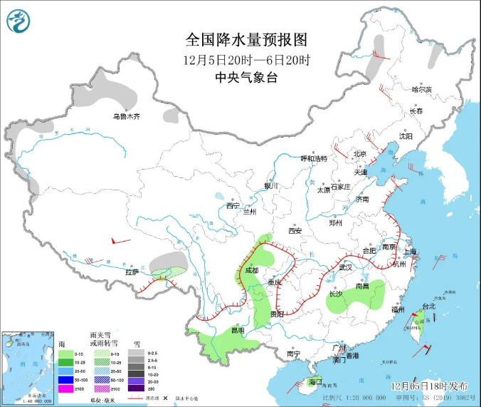 今日天气:新疆沿天山地区和南疆西部山区、内蒙古东北部、黑龙江北部、西藏东部等地的部分地区有小雪或雨夹雪。甘肃南部、四川盆地、贵州西部、云南中南部、湖南东部、江西中部、福建西北部、海南岛、台湾岛等地的部分地区有小雨。