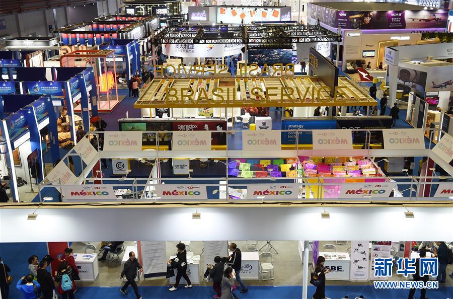 这是2018年11月10日,参观者在上海举行的首届中国国际进口博览会上参观。新华社记者 韩瑜庆 摄