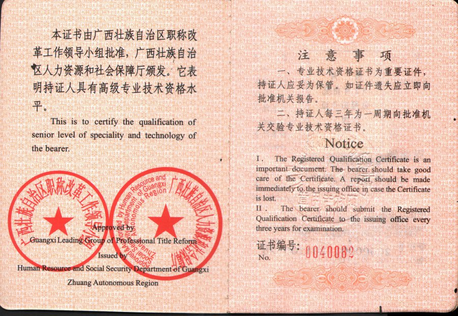 附:高级工程师证书