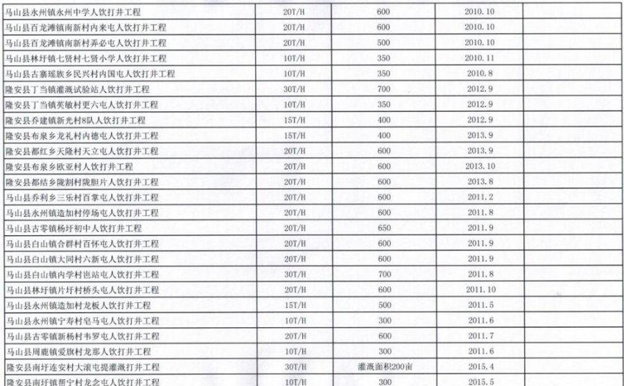 广西建业勘察设计有限公司近年来在广西区内地下找水成井业绩表