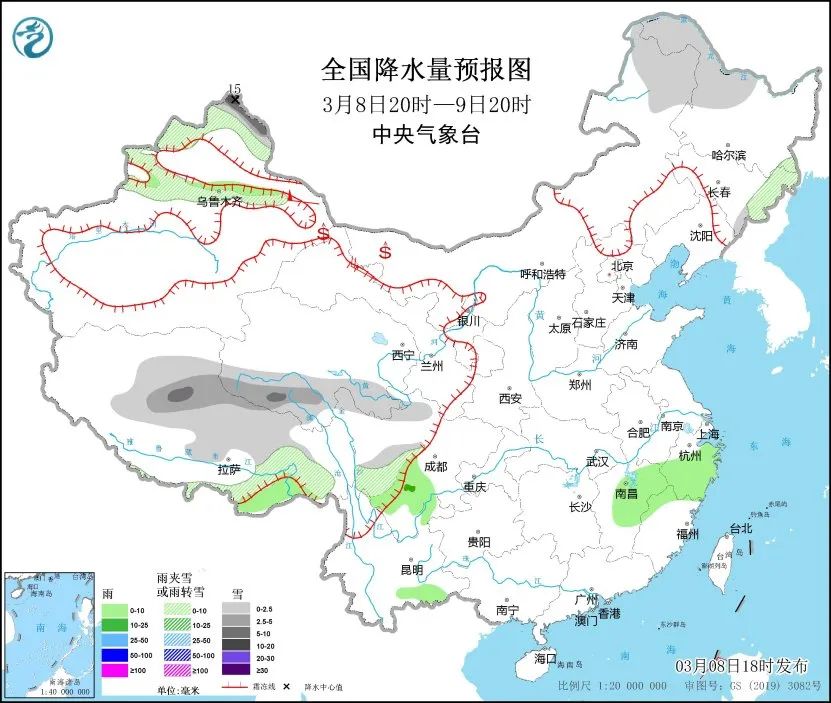 今日天气:内蒙古东北部、黑龙江西北部等地部分地区有小到中雪,其中,新疆北疆北部等地部分地区有大到暴雪。西藏东南部、江南北部和东部等地部分地区有小雨,其中,四川盆地西南部等地部分地区有中雨。