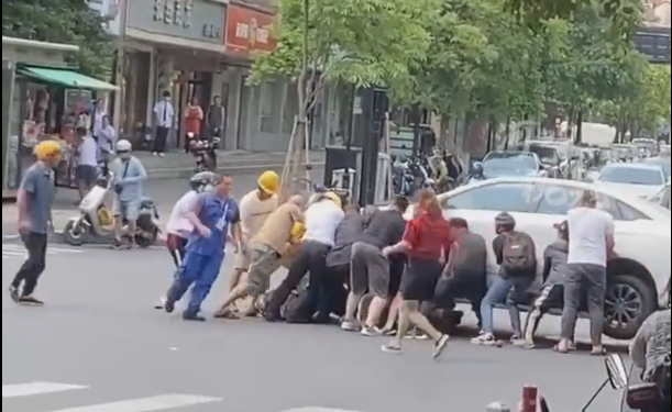 浙江杭州一女子遭遇车祸被卷入车底。危急时刻,十几位路人迅速跑上前,仅用32秒就将女子救出。