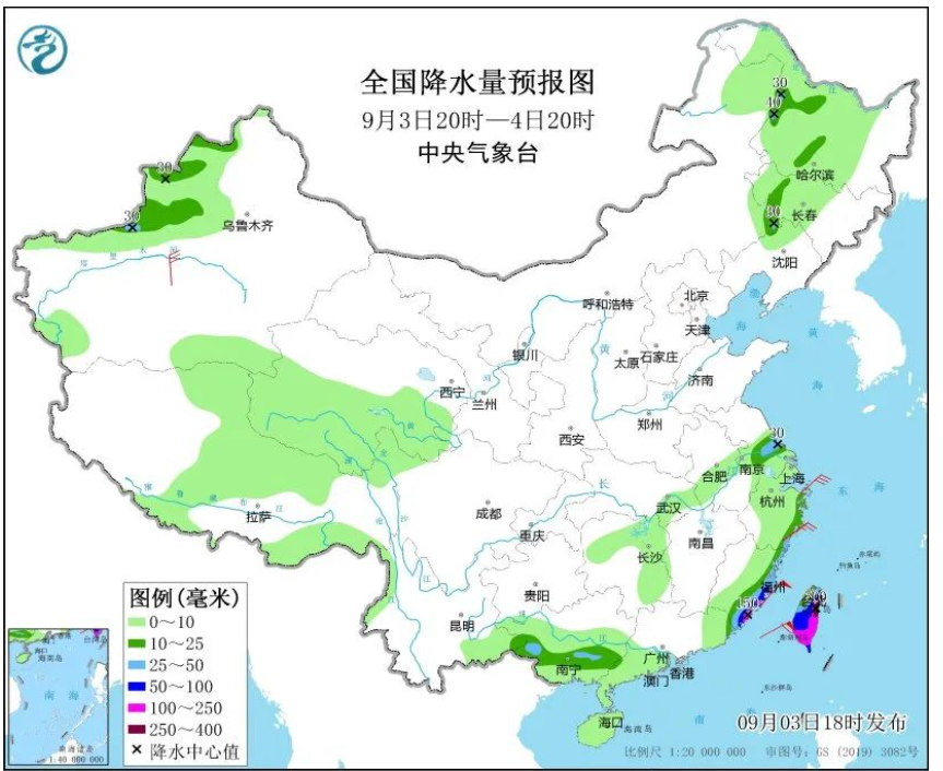 福建东部、浙江东部、台湾岛、江苏中南部、广西中南部、黑龙江西部、内蒙古东南部、新疆西部等地有中到大雨,其中,福建东南部、台湾岛东部和南部等地部分地区有暴雨或大暴雨,台湾岛东部等地局地特大暴雨。