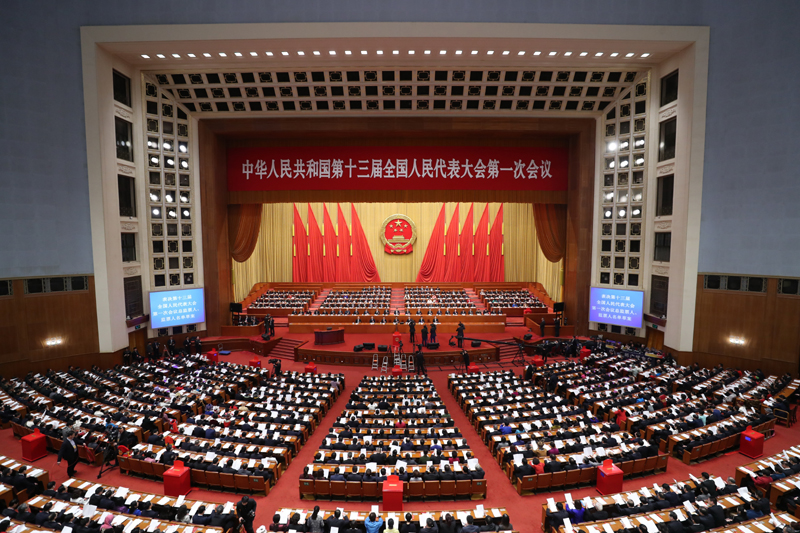 3月11日,十三届全国人大一次会议在北京人民大会堂举行第三次全体会议。新华社记者 王晔 摄