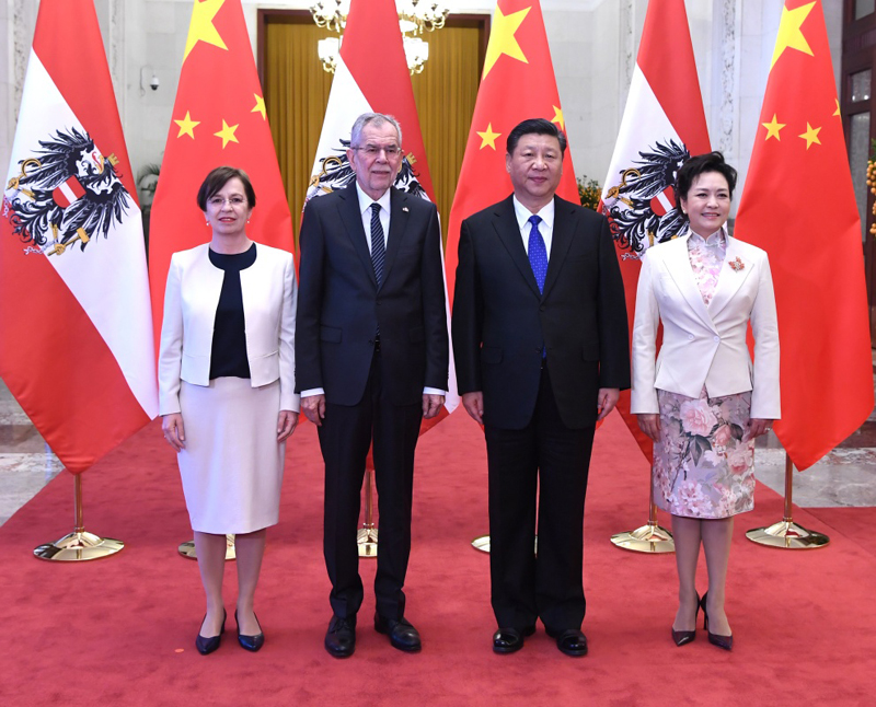 习近平欢迎范德贝伦首次来华进行国事访问并出席博鳌亚洲论坛年会。习近平指出,总统先生率库尔茨总理及多位部长组成的高级别大型代表团访华,在中奥交往史上尚属首次,充分体现了总统本人及奥地利政府对发展中奥关系的高度重视。总统先生还将到中国人民英雄纪念碑前敬献花圈,体现了对中国人民的尊重和友好情谊。奥地利是中国在欧洲的重要合作伙伴。中奥两国都具有悠久历史和灿烂文化,两国人民彼此怀有友好感情。库尔茨总理领导的奥地利新一届政府将积极发展对华关系和“一带一路”倡议首次写入执政协议,中方对此表示赞赏。中方愿同奥方一道,共同挖掘和释放两国合作潜能,播撒更多友谊与合作的种子,更好造福两国人民。