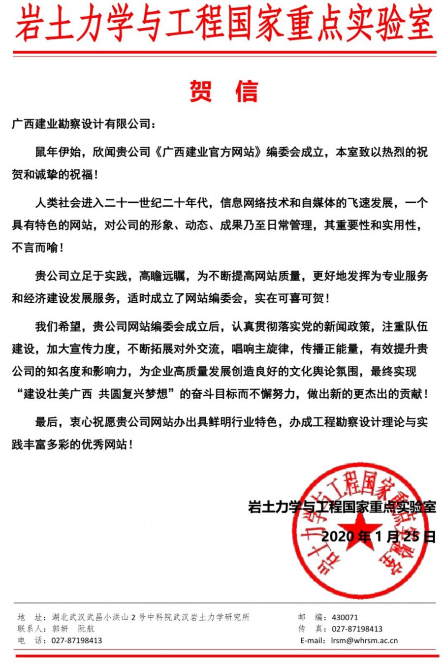 鼠年之初,欣闻贵公司成立了《广西建业官方网站》编委会,我在此表示热烈的祝贺和诚挚的祝福!